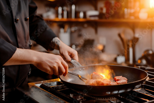 chef, cooking, meat, frying pan, spark, kitchen, culinary, stove, cookery, heat, food preparation, hand, kitchen utensile, culinary arts, fire, frying, gastronomy, flames, kitchen utensile
