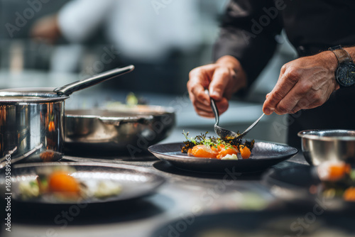 chef, cook, epicure, plating, fine dining, haute cuisine, culinary arts, gastronomy, eatery, kitchen, plate, food preparation, cooking, herb, vegetable, food photography, ai, generative
