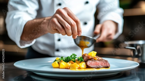 chef, epicure, steak, dish, preparation, kitchen, culinary, fine dining, food, potato, sauce, plating, ingredient, art, meal, eatery, cookery, professional, skill, cook, delicious, fresh, herb, presentation, favor, texture, elegant, artistry