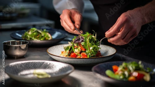Chef preparing salads at restaurant
