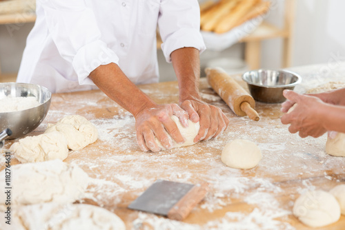 dough, flour, hand, making, working, pastry, cook, closeup, raw, kneading, ingredient, culinary, product, occupation, arm, professional occupation, professional, pushing, messy, effort, process, chief, skilled, gastronomy, kitchen utensile, food preparation, equipment, uncooked, scatter, craft, expertise, dust, pie, board, yeast, prepare, kitchen, rustic, receipe, workshop, craftsmanship, artisan, patisserie, menu