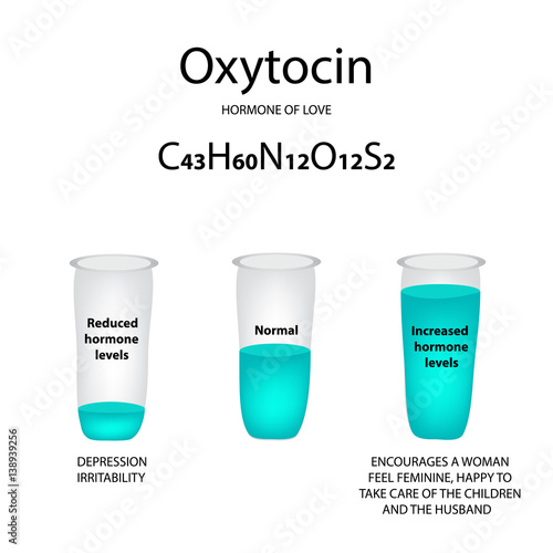 Chemical molecular formula Oxytocin hormone. Hormone of love. Lowering and raising of oxytocin. Infographics Vector illustration