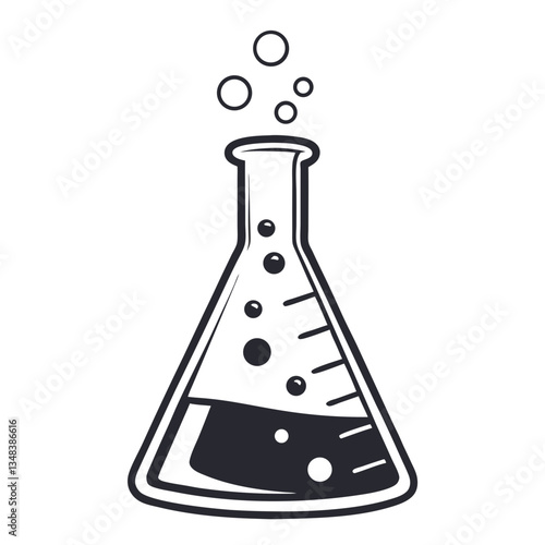flask, chemistry, science, experiment, laboratory, research, liquid, bubble, reaction, education, medicals, biology, physics, test tube, black-and-white, vector, outline, minimal, scientific, analysis, discovery, innovation, modern, technology, health care, engineering, alchemy, potion, formula, school, stem, academic, symbolic, medicine, chemical, microbiology, futuristic, illustration, icon, emblem