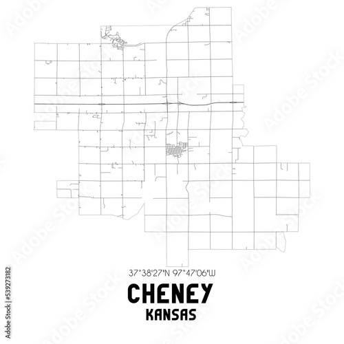 Cheney Kansas. US street map with black and white lines.