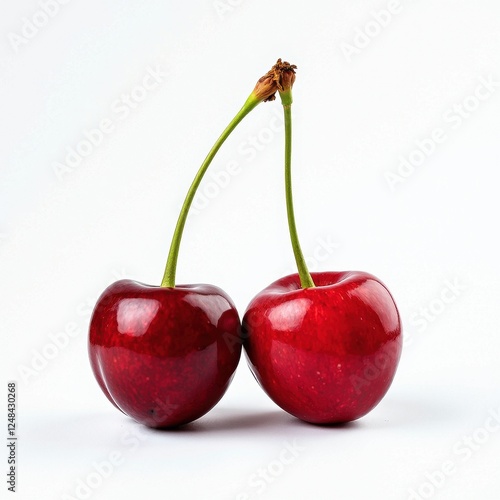 cherry, fruit, food, isolated, red, sweet, berry, ripe, cherry, white, 2, healthy, fresh, dessert, juicy, closeup, nature, delicious, vegetarian, diet, green, freshness, tasty, pair, macro
