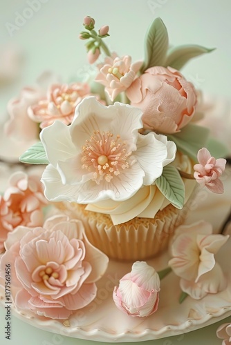 Cherry Blossom Cupcake with Floral Buttercream Topping