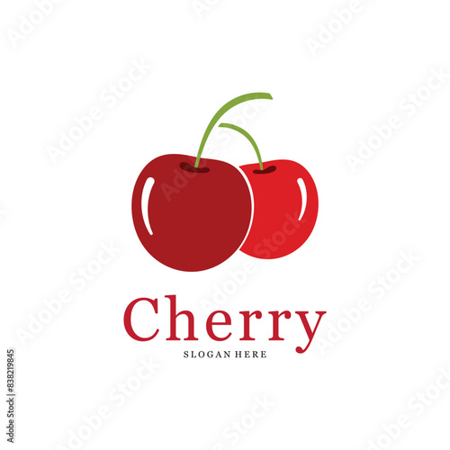 Cherry Fruit Logo Template. Vector Illustration Cherries Symbol.