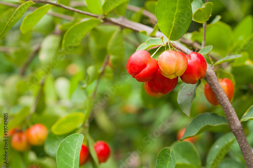 Cherry fruits on the tree.