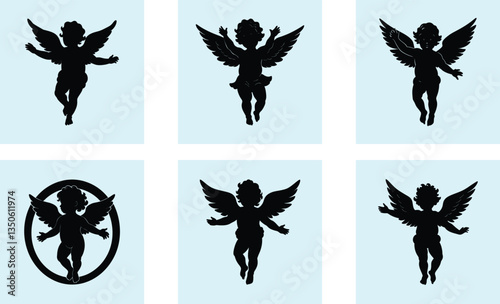 silhouette, vector, cherub, angel, cupid, love, illustration, valentine, nubes, day, celebration, holiday, symbol, isolated, background, decoration, baby, flying, shape, graphic, arrow, white, romance, bow, cute, wing, design, romantic, art, card, wedding, happiness, wing, cartoon, children, greeting, happy, icon, arch, lovely, desire, boy, image, christmas, character, fun, gift, smile, decor