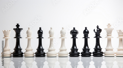 Chess Game use strategies to rules the board, Decision Making match, chess piece Isolated on White Background, AI Generated