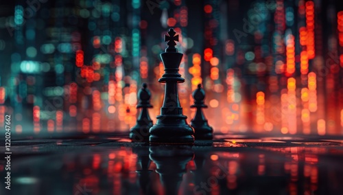 chess, king, piece, game, strategy, board, night, city, light, bokeh, urban, black, dark, glow, background, abstract, minimal, concept, design, art, photo, still, life, pattern, texture, sharpened, sharp, blur, soft, contrast, composition, modern, creative, futuristic, power, leader, success, ambition