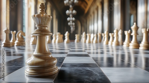 chess, queen, board, game, strategy, marble, hall, grand, piece, competition, king, pawn, knight, bishop, checkmate, victory, defeat, power, intelligence, wisdom, skill, challenge, thinking, planning, tactic, move, play, match, tournament, classic, royals, elegant, luxury, indoor, light, perspective, depth, sharpened, composition