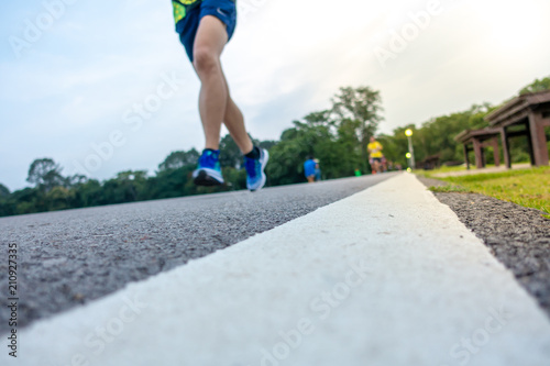 Chiang Mai, Thailand - June 17th, 2018 : Feet of Chiang Mai people running in marathon running race on June 17th, 2018 in Chiang Mai Thailand