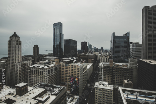 america, architecture, background, building, chicago, city, city landscape, downtown, illinois, old style, panorama, skyline, street, us, vintage
