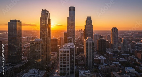 Chicago Skyline at Sunset, Urban Landscape Photo