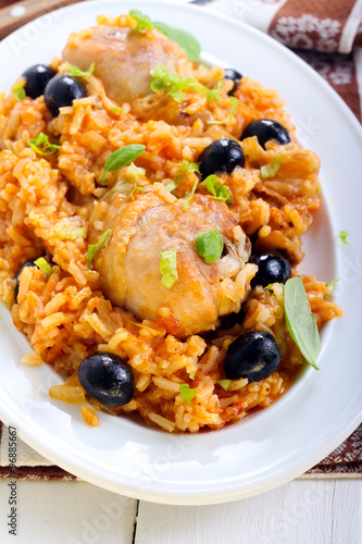 black, casserole, chicken, comfort, cooked, dinner, dish, food, greek, healthy, homemade, leg, meal, meat, olive, paella, poultry, rice, risotto, sauce, savoury, spicey, tomatoes