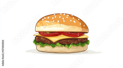 isolated, cartoon, illustration, fast food, sandwich, funny, graphic design, clip art, humorous, delicious, meal, poultry, epicure, burger, food, cute, character, design element, crispy, chicken breast, bun, lettuce, tomatoes, cheese, mayo, snack, lunch, dinner, tasty, artistic, playful, digital artwork, vibrant, colours, modern, stylised, quirky, animated, appetising, satisfying, junk food, cheerful, unique, whimsical, creative, fresh
