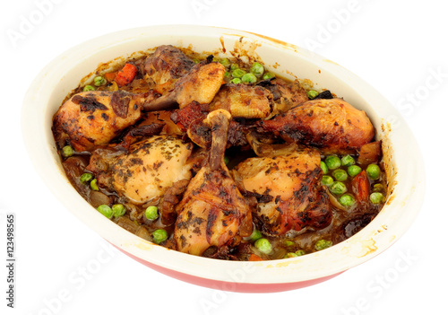 casserole, chicken, meat, bird, meal, stew, oven, dish, oval, baked, cooked, vegetable, carrot, pea, gravy, winter, hot, warming, comfort, food, ingredient, cook, cooking, isolated, white, background
