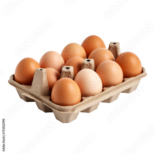 Chicken eggs in paper tray isolated on transparent background, PNG available