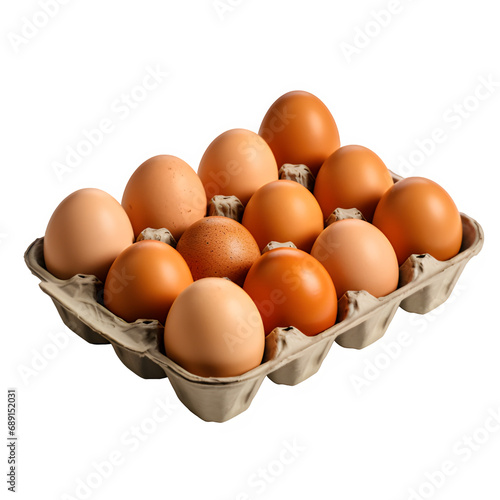 chicken eggs in paper tray isolated on transparent background ,raw egg png ,generative ai