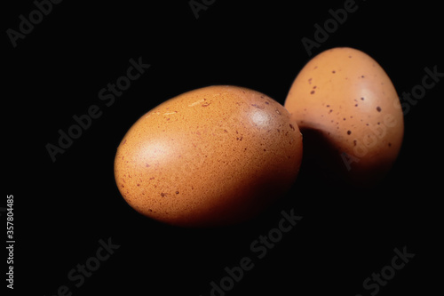 Chicken eggs on black background