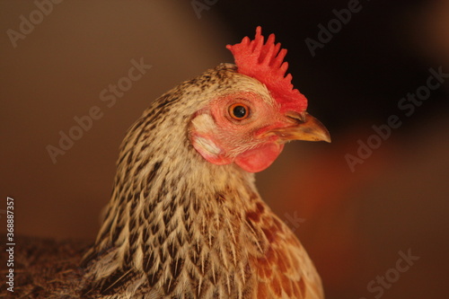 Chicken on a farm close-up portrait