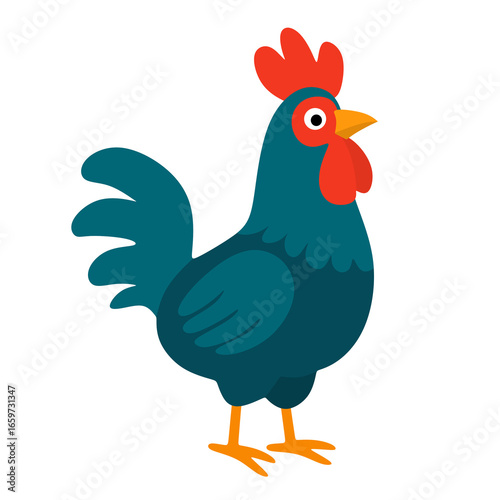 chicken, rooster, farm, animal, poultry, bird, illustration, flat, teal, red, orange, beak, leg, comb, wattle, domestic, farm animal, fowl, countryside, agriculture, farming, design, graphic, cartoon, mascot, symbol, nature, avian, cute, isolated, white background, clip art, element, icon, signs, art, springtime, easter, decoration, farm animal, rural, backyard, wildlife, cock, hen, animal, feather