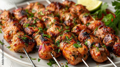 Chicken Seekh Kebabs on white backgroud " ai generated "