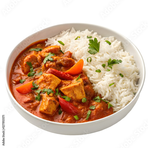 Chicken Tikka Masala with Rice: Indian Recipe isolated on transparent background