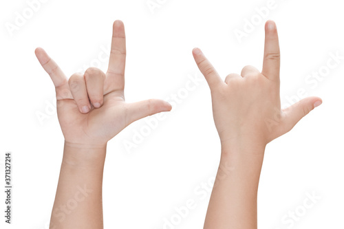 Child hand in I love you (Love hand sign language) Isolated on white background with clipping path.