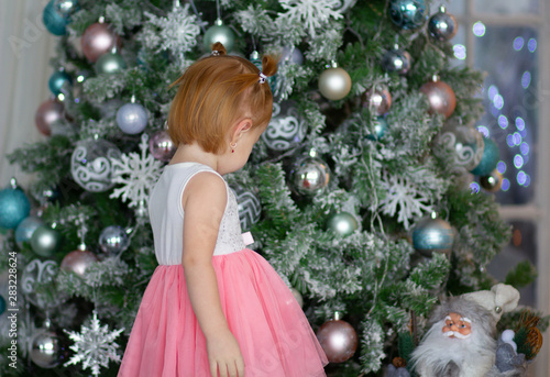 children, children, toddler, baby, little girl, small, young, female, innocence, kindergartner, room, home, blurred, shiny, light, decoration, christmas, christmas, tree, decorated, decorative, new year, tradition, eve, illumination, christmas, hanging, toy, closeup, year, merry, ball, snowflake, back, dress, celebration, holiday, event