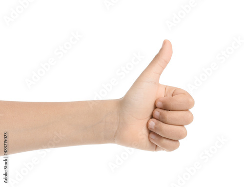 Child showing thumb-up on white background