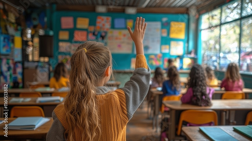 Child Student Raising Hand in Classroom