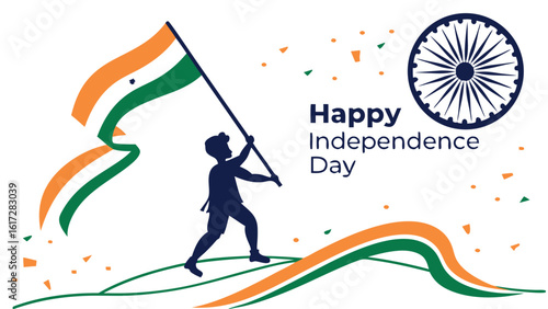 independence, celebration, children, flag, waving, freedom, patriotic, holiday, graphic, design, illustration, silhouette, orange, green, white, confetti, celebratory, vector, image, background, graphic design
