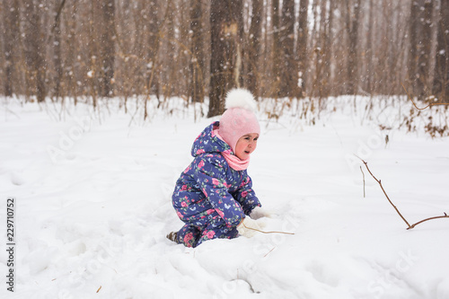 Childhood and nature concept - Adorable child playing in winter park