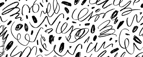 Childish seamless banner design with crayon drawn squiggles and doodle lines.