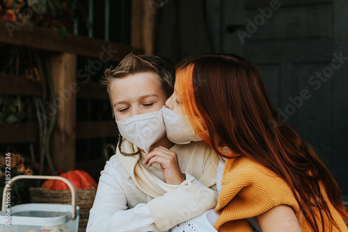 autumn, backyard, boy, childhood, concept, cosy, cosy, decor, decorated, design, epidemic, face mask, family, friends, friendship, girl, halloween, happy, having fun, health care, holiday, home, children, kiss, love, pandemic, porch, portrait, protective, pumpkin, quarantine, respiratory, safety, school, season, sibling, stair, survival, thanksgiving, together, virus