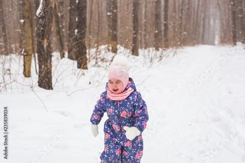 Children and nature concept - Adorable baby girl walking in winter park