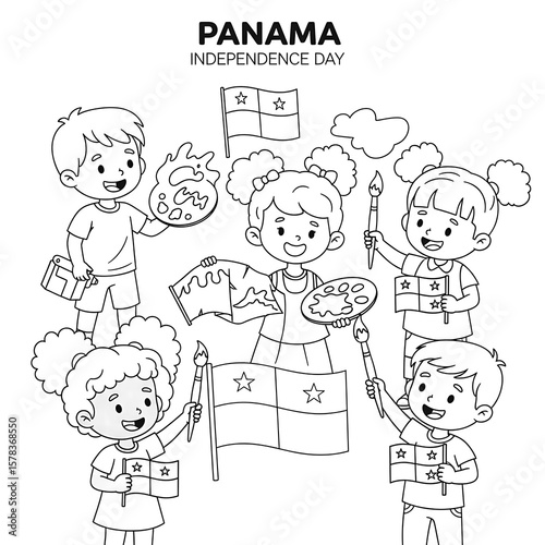 panama, independence, day, children, children, celebration, art, painting, drawing, flag, panamanian, national, holiday, patriotic, culture, education, school, vector, illustration, line, outline, black, and, white, supply, paint, palette, paintbrush, creativity, joyful, happy, group, community, pride, latin