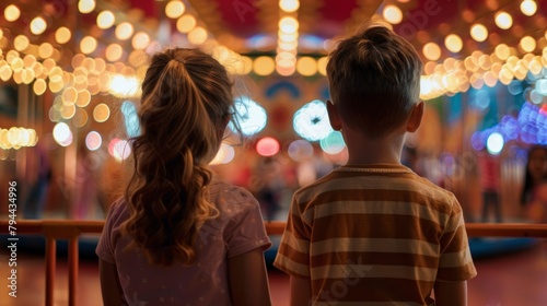 children on their backs in an amusement park at night with blurred background in high resolution and high quality