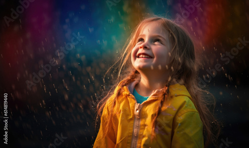 colours, ai, generative, umbrella, rain, children, smiling, summer, girl, happiness, smile, fun, happy, cheerful, lively, energetic, noisy, ecstatic, playful, mischievous, elated, excited, vibrant, delighted, thrilled, exuberant, jumping, splashing, refreshed, carefree, free, jubilant, overflowing, content, joyful, enchanted