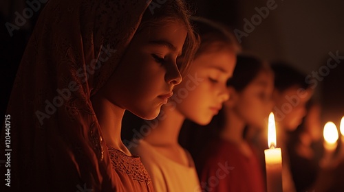 children, girl, prayer, candle, light, faith, hope, religion, spirituality, peace, serenity, devotion, worship, ceremony, tradition, belief, innocence, purity, childhood, togetherness, community, darkness, warm, glow, quiet, solemn, reverend, humble, spiritual, sacred, mystical, holy, divine, blessing, meditation, sharpened, stillness, calm, calmness, comfort, safety, love, family