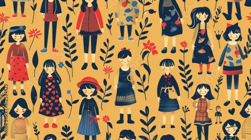 pattern, flower, woman, people, baby, paper, fashion, art, illustration, girl, cartoon, hair, white, children, paint, green, black, seamless, card, colours, face, wallpaper, character, children, cute, red, holiday, fabric, pink, person, ornament, funny, set, young, print, yellow, toy, textile, dress, material, element, smileys, doll, greeting, female, little, violet, wrapping