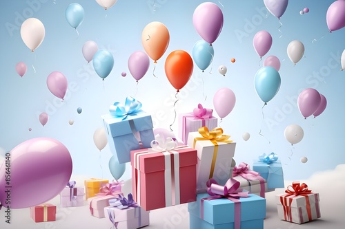 gift, birthday, balloon, box, celebration, holiday, party, present, vector, ribbon, happy, decoration, card, surprise, bow, illustration, christmas, balloon, fun, greeting, pink, design, nubes, anniversary, confetti