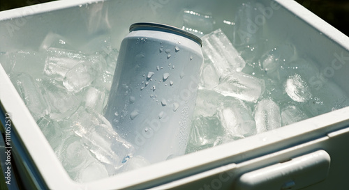 Chill vibes with this ice-cold can surrounded by glistening ice cubes