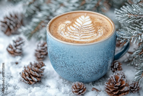 Chilled Elegance: Icy Blue Winter Latte with Frosted Edges, A Modern Beverage Delight for the Season