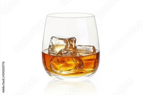 Chilled whiskey in a glass with ice cubes, perfect for a relaxing evening. isolated on white background.