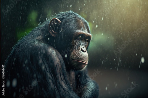 Chimpanzee in the rain