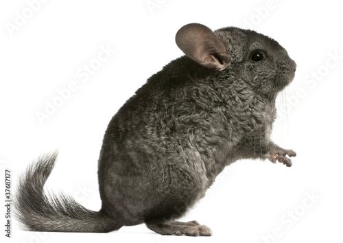 Chinchilla, 18 months old, sitting in front of white background