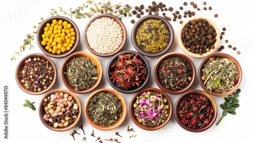Chinese herbal teas Isolated on white background. cooking ingredients for healthful food concept for designer